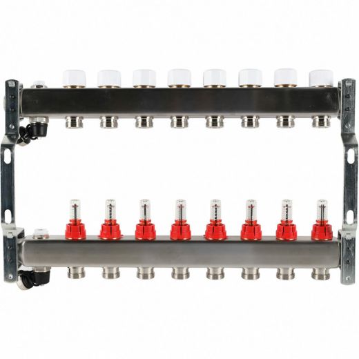 Коллектор из нержавеющей стали с расходомерами, с клапаном выпуска воздуха и сливом 8 выходов ROMMER