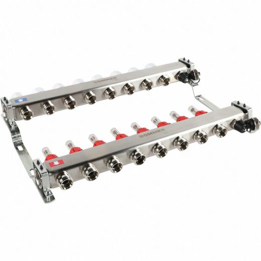 Оцените товар «Коллектор из нержавеющей стали с расходомерами, с клапаном выпуска воздуха и сливом 8 выходов ROMMER»