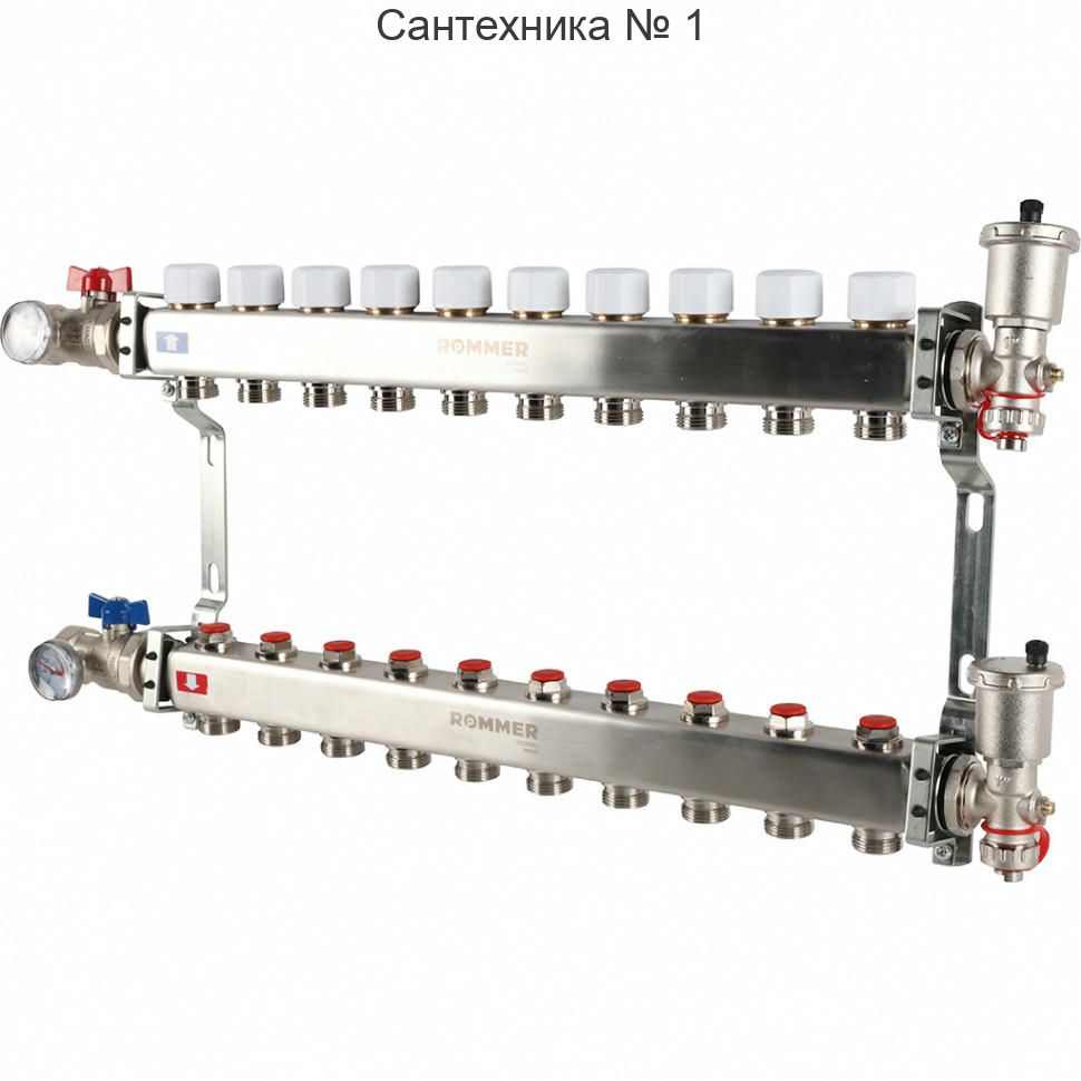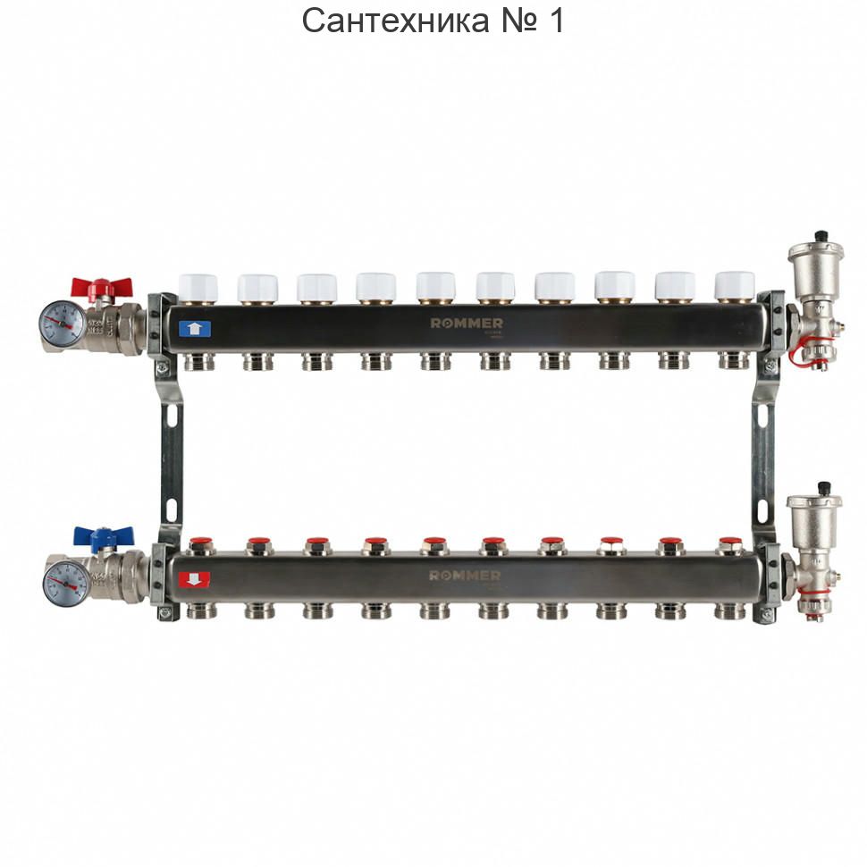 Коллектор из нержавеющей стали в сборе без расходомеров 10 выходов ROMMER