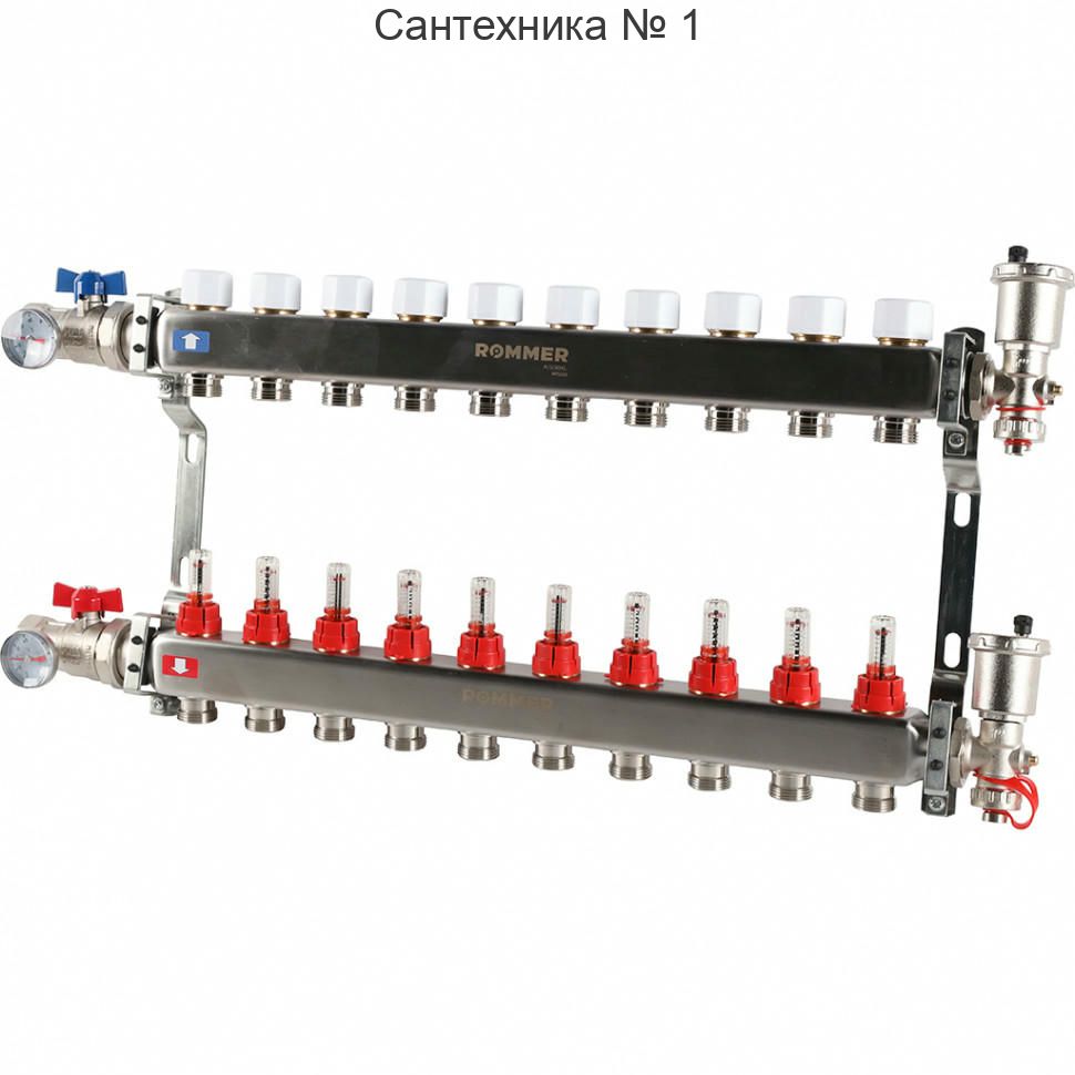 Коллектор из нержавеющей стали в сборе с расходомерами 10 выходов ROMMER