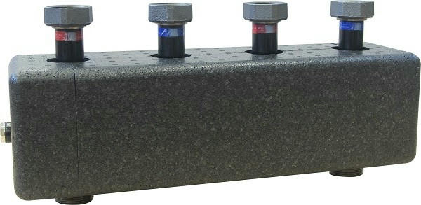 Коллектор стальной комбинированный с гидравлическим разделителем для подключения насосных групп Ду 25 и Ду 32. Пропускная способность 3 м3/ч (70 кВт). В комплекте с теплоизоляцией и настенным крепежом.