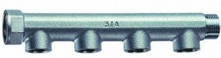 Коллектор проходной 1 1/4" ВР-НР с 4 отводами 1/2" ВР межосевое 50 мм FAR