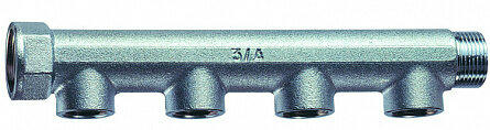 Оцените товар «Коллектор проходной 3/4" ВР-НР с 4 отводами 1/2" ВР межосевое 50 мм FAR»