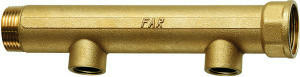 Оцените товар «Коллектор распределительный 1 1/2" НР-ВР с 2 отводами 3/4" ВР, межосевое 100 мм FAR»