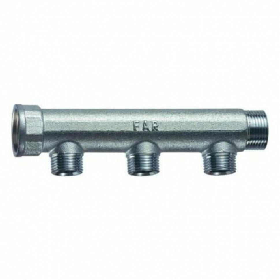 Коллектор распределительный 1" ВР-НР с 3 отводами 1/2" НР, хром FAR