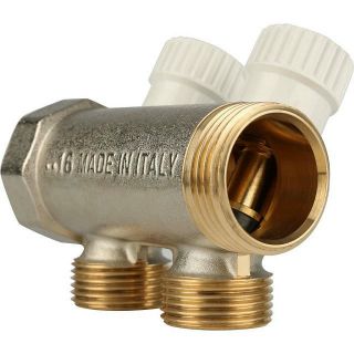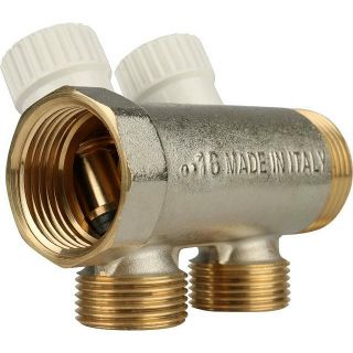 Коллектор распределительный 1 на 2 отвода 3/4 ЕК, никелированный STOUT