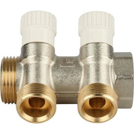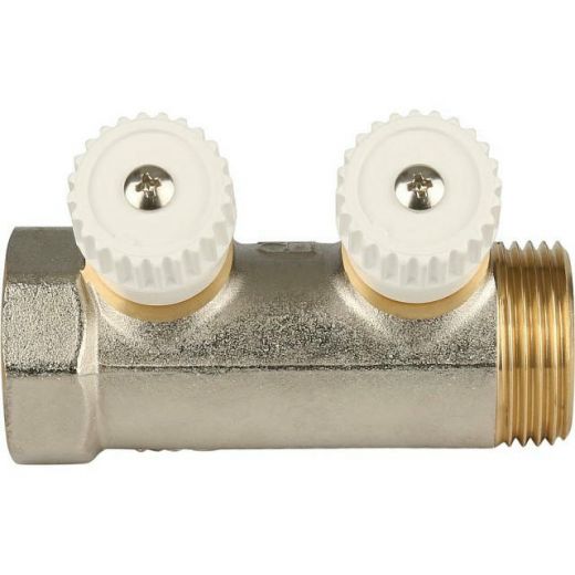 Оцените товар «Коллектор распределительный 1 на 2 отвода 3/4 ЕК, никелированный STOUT»