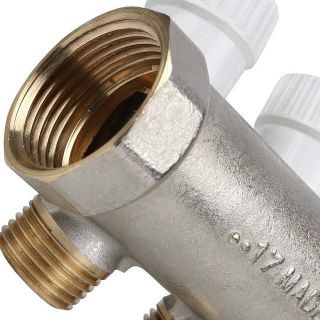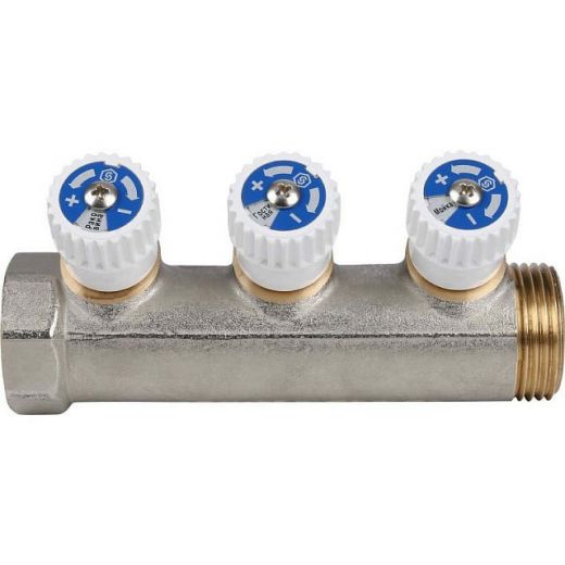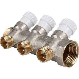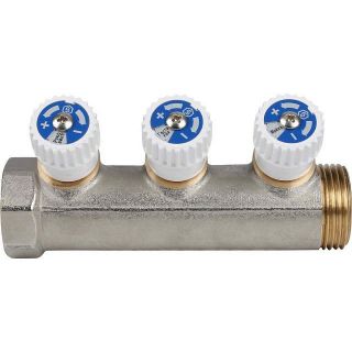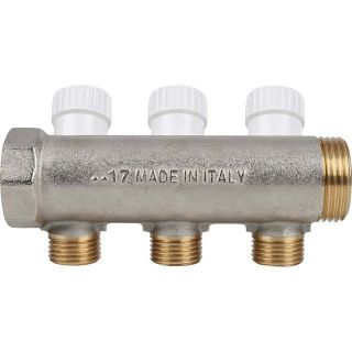 Коллектор распределительный 1" на 3 отвода 1/2", никелированный STOUT ? предназначены для распределения потока транспортируемой среды по потребителям путем перекрытия и регулировки клапанов на отводах. Коллекторы могут использоваться на трубопроводах систем холодного и горячего водоснабжения, а также для транспортировки жидкости, не агрессивной к материалам элементов коллекторных систем.