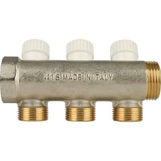 Коллектор распределительный 1" на 3 отвода 3/4" ЕК, никелированный STOUT ? предназначены для распределения потока транспортируемой среды по потребителям путем перекрытия и регулировки клапанов на отводах. Коллекторы могут использоваться на трубопроводах систем холодного и горячего водоснабжения, а также для транспортировки жидкости, не агрессивной к материалам элементов коллекторных систем.
