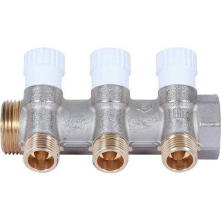 Коллектор распределительный 1 с 3 отводами 1/2, плоское уплотнение, никелированный STOUT