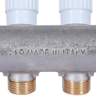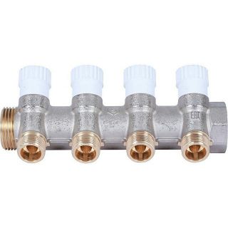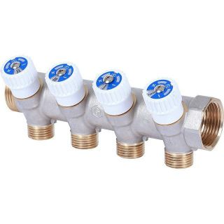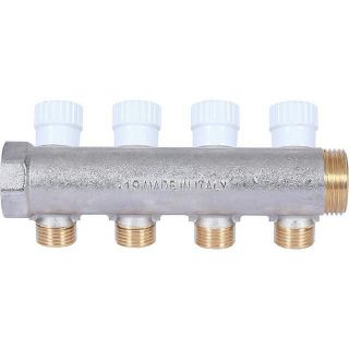 Коллектор распределительный 1 с 4 отводами 1/2, плоское уплотнение, никелированный STOUT