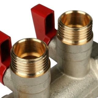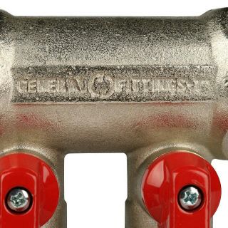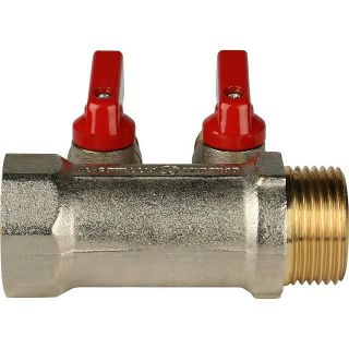 Коллектор распределительный 1 с запорными кранами и 2 отводами 1/2, ручки красные STOUT