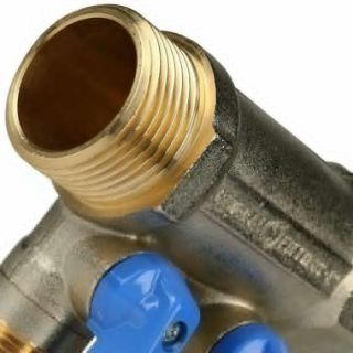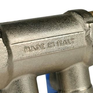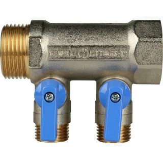 Коллектор распределительный 1 с запорными кранами и 2 отводами 1/2, ручки синие STOUT
