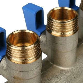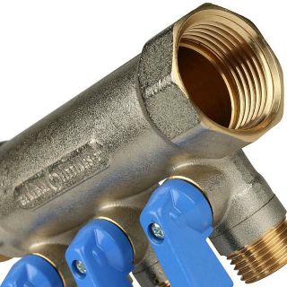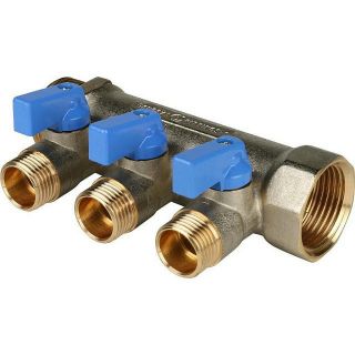 Коллектор распределительный 1 с запорными кранами и 3 отводами 1/2, ручки синие STOUT