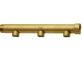 Гребенка FAR FK 3612 распределительная проходная с 3 отводами 1/2", 3/4? или 1" ВР (без покрытия). Коллекторы с увеличенным расстоянием между отводами (100 мм) рекомендуется устанавливать на магистральных участках распределения: в коттеджных котельных или в домовых участках ввода водоснабжения. Межосевое расстояние отводов коллекторов FAR FK 3612 позволяет устанавливать на них не только шаровые краны, но и водосчетчики и моторизованные шаровые краны FAR.