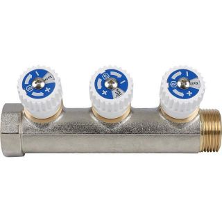 Коллектор распределительный 3/4 на 3 отвода 1/2, никелированный STOUT