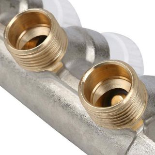 Коллектор распределительный 3/4" на 3 отвода 1/2", никелированный STOUT предназначен для распределения потока транспортируемой среды по потребителям путем перекрытия и регулировки клапанов на отводах. Коллекторы могут использоваться на трубопроводах систем холодного и горячего водоснабжения, а также для транспортировки жидкости, не агрессивной к материалам элементов коллекторных систем.