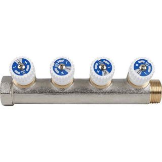 Коллектор распределительный 3/4 на 4 отвода 1/2, никелированный STOUT