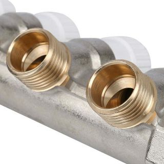 Коллектор распределительный 3/4" на 4 отвода 1/2", никелированный STOUT предназначен для распределения потока транспортируемой среды по потребителям путем перекрытия и регулировки клапанов на отводах. Коллекторы могут использоваться на трубопроводах систем холодного и горячего водоснабжения, а также для транспортировки жидкости, не агрессивной к материалам элементов коллекторных систем.