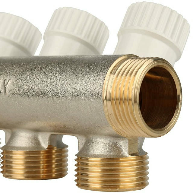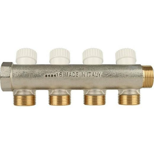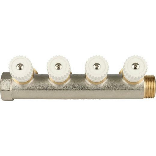 Оцените товар «Коллектор распределительный 3/4 на 4 отвода 3/4 ЕК, никелированный STOUT»