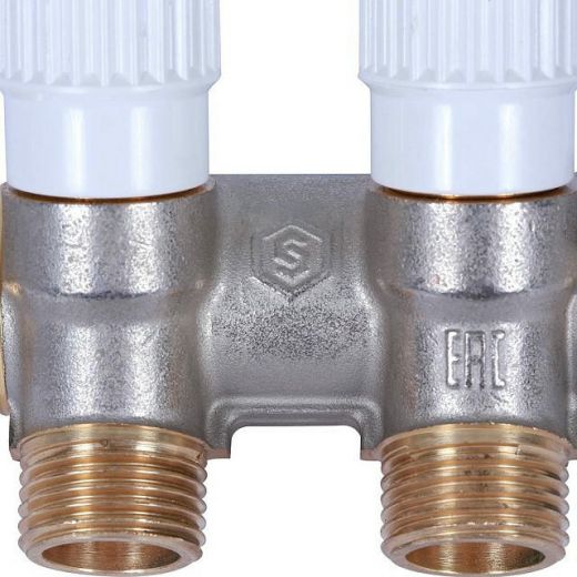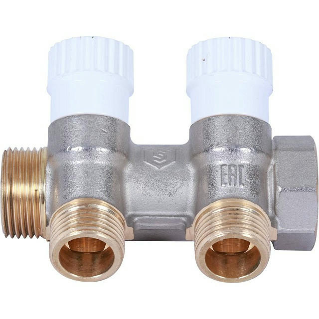 Оцените товар «Коллектор распределительный 3/4 с 2 отводами 1/2, плоское уплотнение, никелированный STOUT»