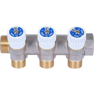 Коллектор распределительный 3/4 с 3 отводами 1/2, плоское уплотнение, никелированный STOUT
