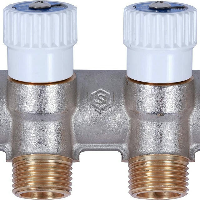 Оцените товар «Коллектор распределительный 3/4 с 4 отводами 1/2, плоское уплотнение, никелированный STOUT»