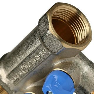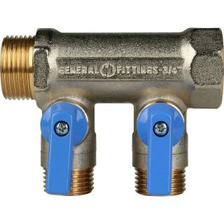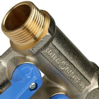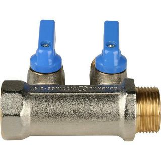 Коллектор распределительный 3/4 с запорными кранами и 2 отводами 1/2, ручки синие STOUT