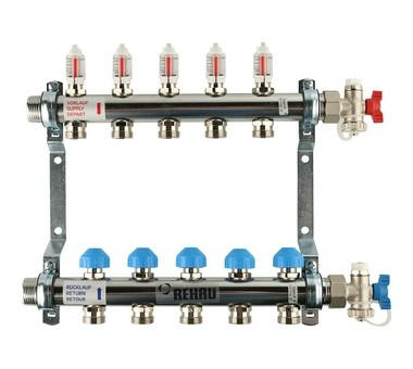 Распределительный коллектор HKV-D 5x5 используется для распределения и регулировки объемного расхода в замкнутых системах обогрева и охлаждения поверхностей, смонтированных в закрытых помещениях. Монтаж распределительных коллекторов REHAU модели HKV-D необходимо проводить внутри зданий с защитой от неблагоприятного влияния условий окружающей среды. Распределительные коллекторы HKV-D должны эксплуатироваться с применением воды для систем отопления согласно VDI 2035. Для защиты измерительных и регулирующих устройств коллектора системы отопления от коррозии или механических загрязнений следует устанавливать грязевики или фильтры с размером ячеек не более 0,8 мм. Максимально допустимое рабочее давление составляет 6 бар при 80 °C. Максимальное давление при испытаниях составляет 8 бар при 20 °C. При применении для охлаждения не допускать образование конденсата на поверхности. Это достигается посредством техники регулирования, например отслеживанием температуры конденсации с помощью датчика точки росы на распределительном коллекторе в сочетании с двусторонней антидиффузной пароизоляцией коллектора.