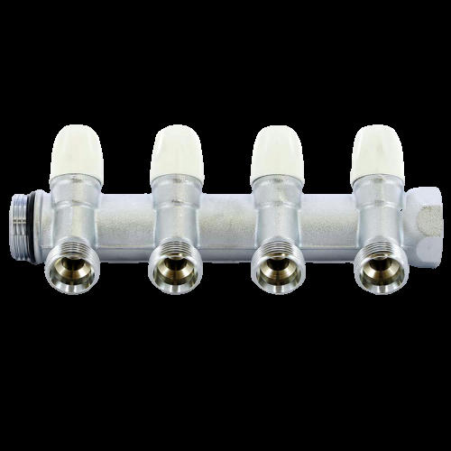 Оцените товар «Коллектор распределительный НВ 1" с регулирующими вентилями 4 выхода 3/4'ЕК 50мм, хром Tiemme»