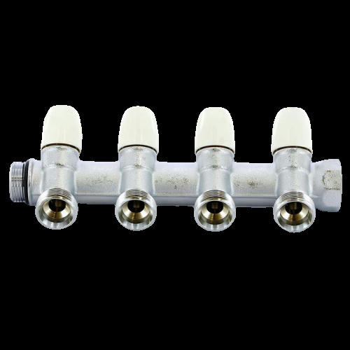 Оцените товар «Коллектор распределительный НВ 3/4" с регулирующими вентилями 4 выхода 3/4'ЕК 50мм, хром Tiemme»