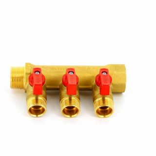 Коллектор распределительный НВ 3/4" с запорными кранами 3 выхода 1/2'Н 36мм Tiemme