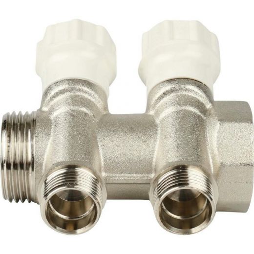 Оцените товар «Коллектор распределительный регулируемый НВ 1" 2 выхода 1/2" Н 38 мм с вентилями, никелированный Itap»