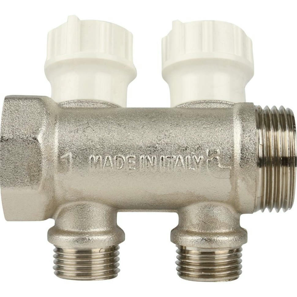 Коллектор распределительный регулируемый НВ 1" 2 выхода 1/2" Н 38 мм с вентилями, никелированный Itap