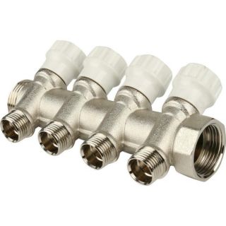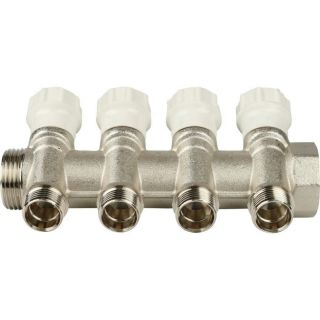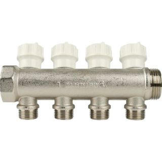 Коллектор распределительный регулируемый НВ 1" 4 выхода 1/2" Н 38 мм с вентилями, никелированный Itap