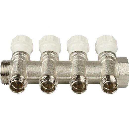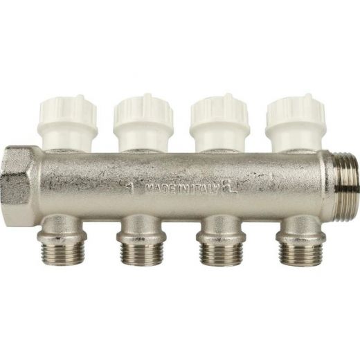 Оцените товар «Коллектор распределительный регулируемый НВ 1" 4 выхода 1/2" Н 38 мм с вентилями, никелированный Itap»
