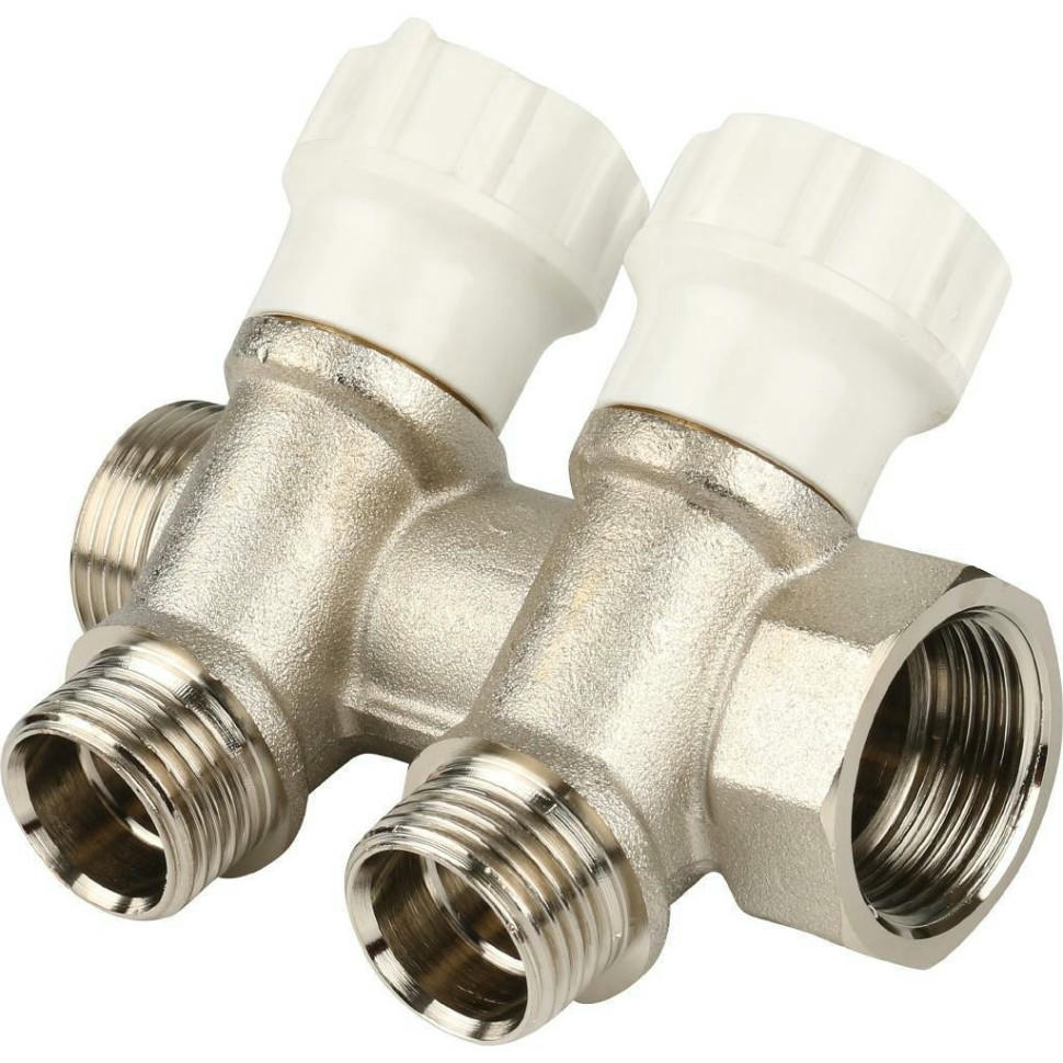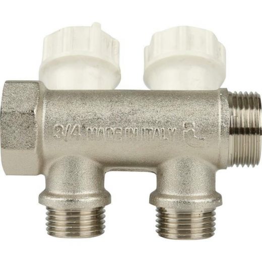 Оцените товар «Коллектор распределительный регулируемый НВ 3/4" 2 выхода 1/2" Н 38 мм с вентилями, никелированный Itap»