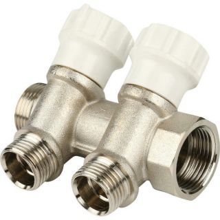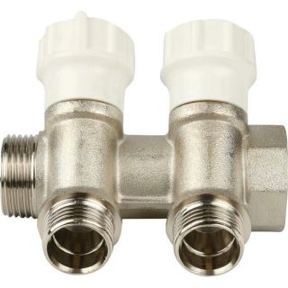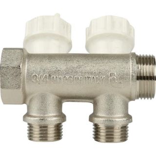 Коллектор распределительный регулируемый НВ 3/4" 2 выхода 1/2" Н 38 мм с вентилями, никелированный Itap