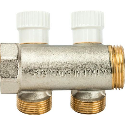Коллектор распределительный с перекрывающими кранами 1" на 2 выхода 3/4 ЕК Luxor CP 452