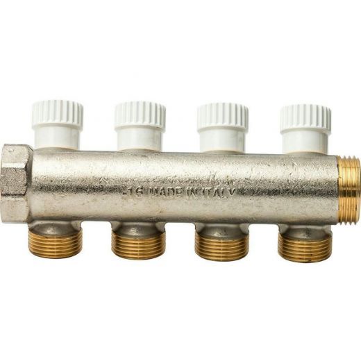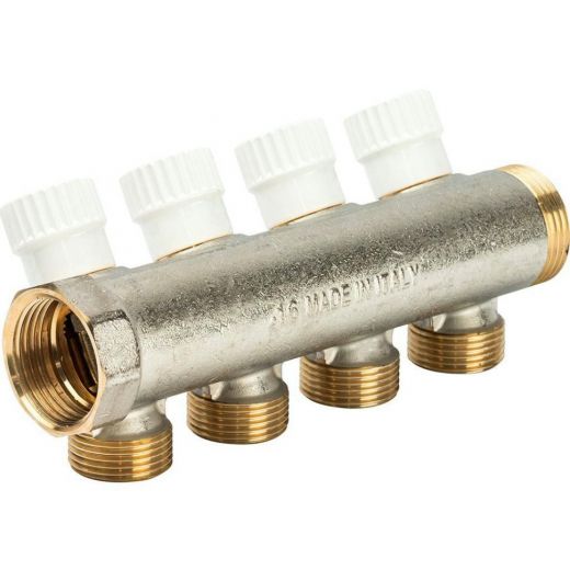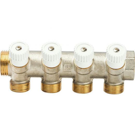 Коллектор распределительный с перекрывающими кранами 1" на 4 выхода 3/4 ЕК Luxor CP 454