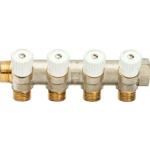 Оцените товар «Коллектор распределительный с перекрывающими кранами 3/4" на 4 выхода 1/2" Luxor CP 464»