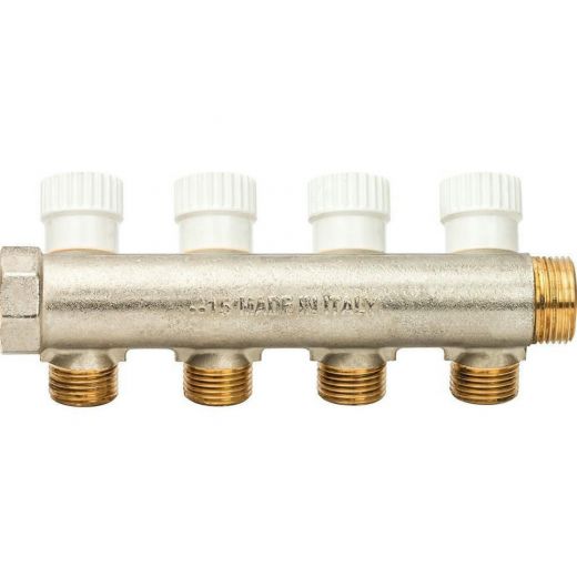 Коллектор распределительный с перекрывающими кранами 3/4" на 4 выхода 1/2" Luxor CP 464