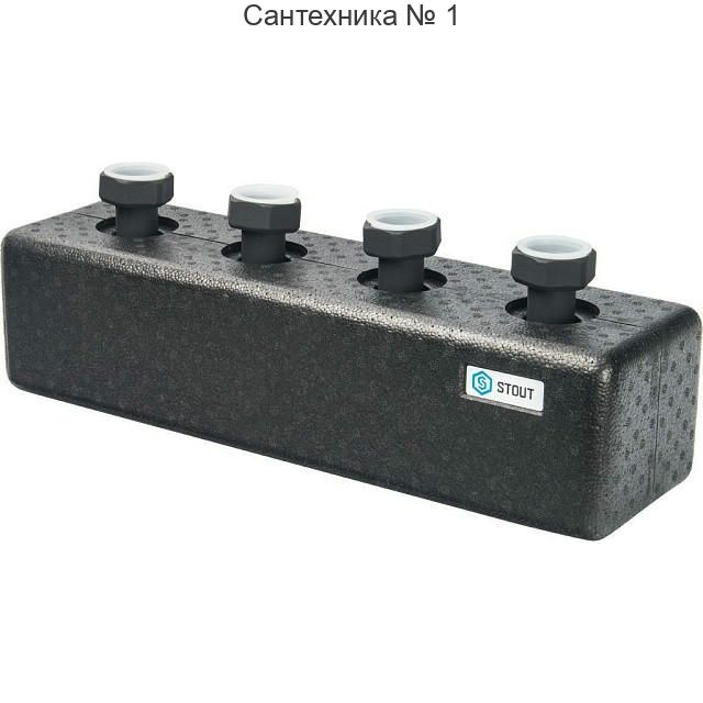 Коллектор распределительный стальной 2 отопительных контура в теплоизоляции DN 25 STOUT