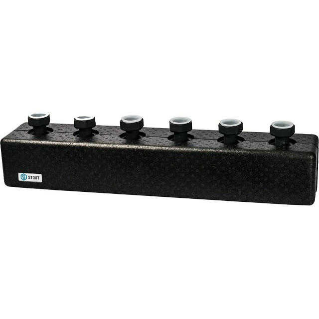 Оцените товар «Коллектор распределительный стальной 3 отопительных контура в теплоизоляции DN 25 STOUT»