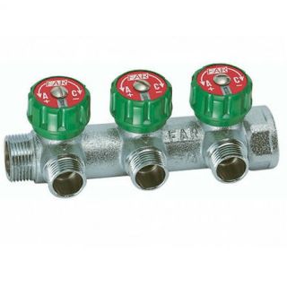 Коллектор регулирующий распределительный 1" (ВР-НР) с 3 отводами 3/4" НР FAR