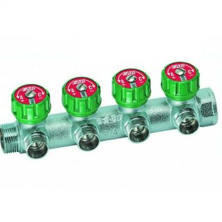 Гребенка проходная FAR FK 3824 с регулирующими вентилями (кранами) проходная (ВР-НР) с 4 отводами под плоское уплотнение (TP). На вкладыше есть отверстие, в которое с помощью вторичных вкладышей-дисков можно установить наименования помещений. В случае необходимости Вы всегда можете приобрести у нас кран-буксу на замену для регулируемого коллектора MULTIFAR. Коллектор FAR FK 3824 позволяет не только полностью открыть/закрыть поток, но и точно регулировать расход по каждому потребителю.