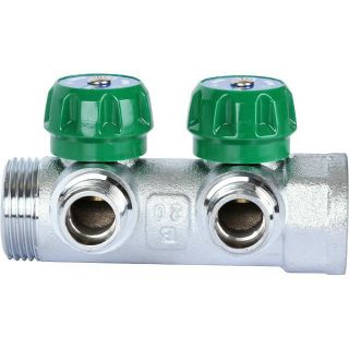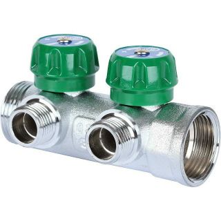 Коллектор регулирующий распределительный 1" с 2 отводами 1/2", плоское уплотнение STOUT