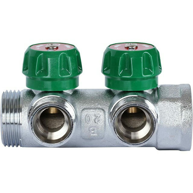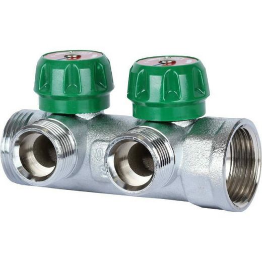Оцените товар «Коллектор регулирующий распределительный 1" с 2 отводами 3/4" ЕК, хромированный STOUT»