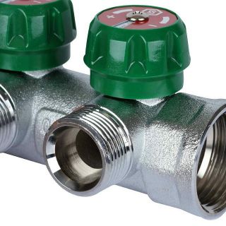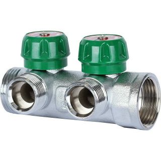 Коллектор регулирующий распределительный 1" с 2 отводами 3/4" ЕК, хромированный STOUT