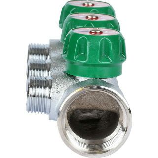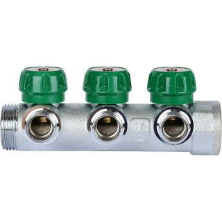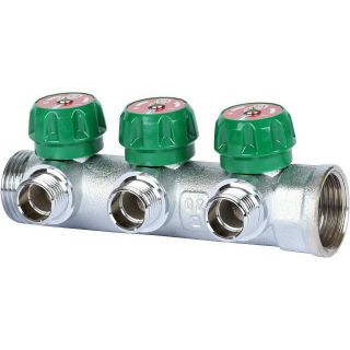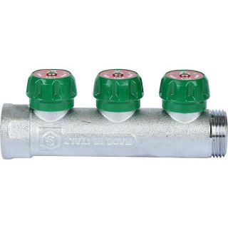 Коллектор регулирующий распределительный 1" с 3 отводами 1/2", плоское уплотнение STOUT